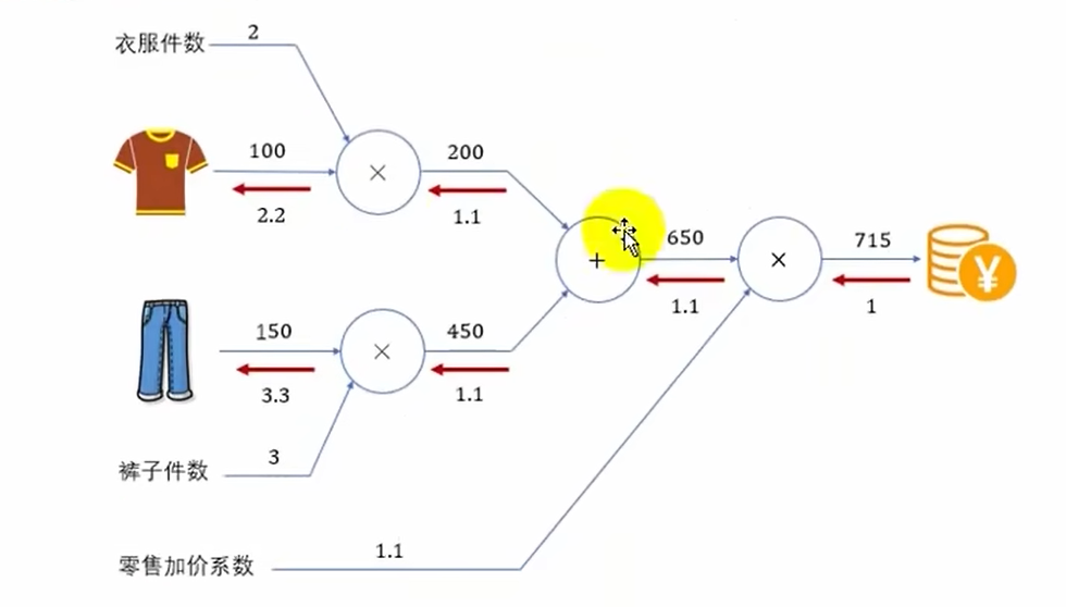 # Loss(w..)=Σtlogyi dy=dL/dy