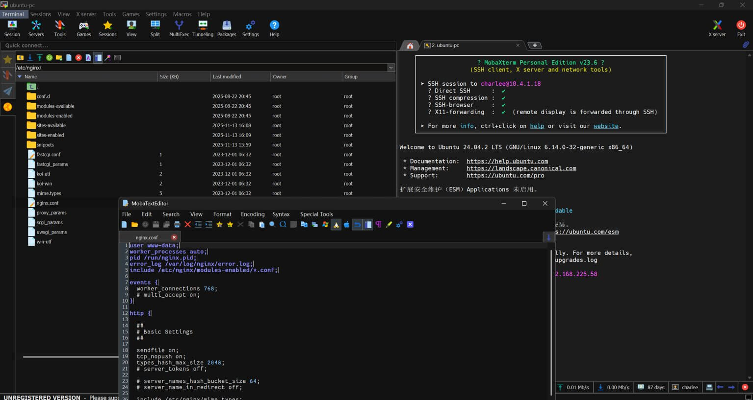 MobaXterm 是一款专为 Windows 用户设计的增强型终端工具,除了本身的 SSH 客户端之外,还集成了一个 SFTP 文件浏览器。通过这个 SFTP 文件浏览器,就可以直接进行文本文件的编辑工作。当然,它的原理还是把文件下载到 Windows 本地,修改完成后再上传,不是特别顺滑;但是一般情况下是够用了。