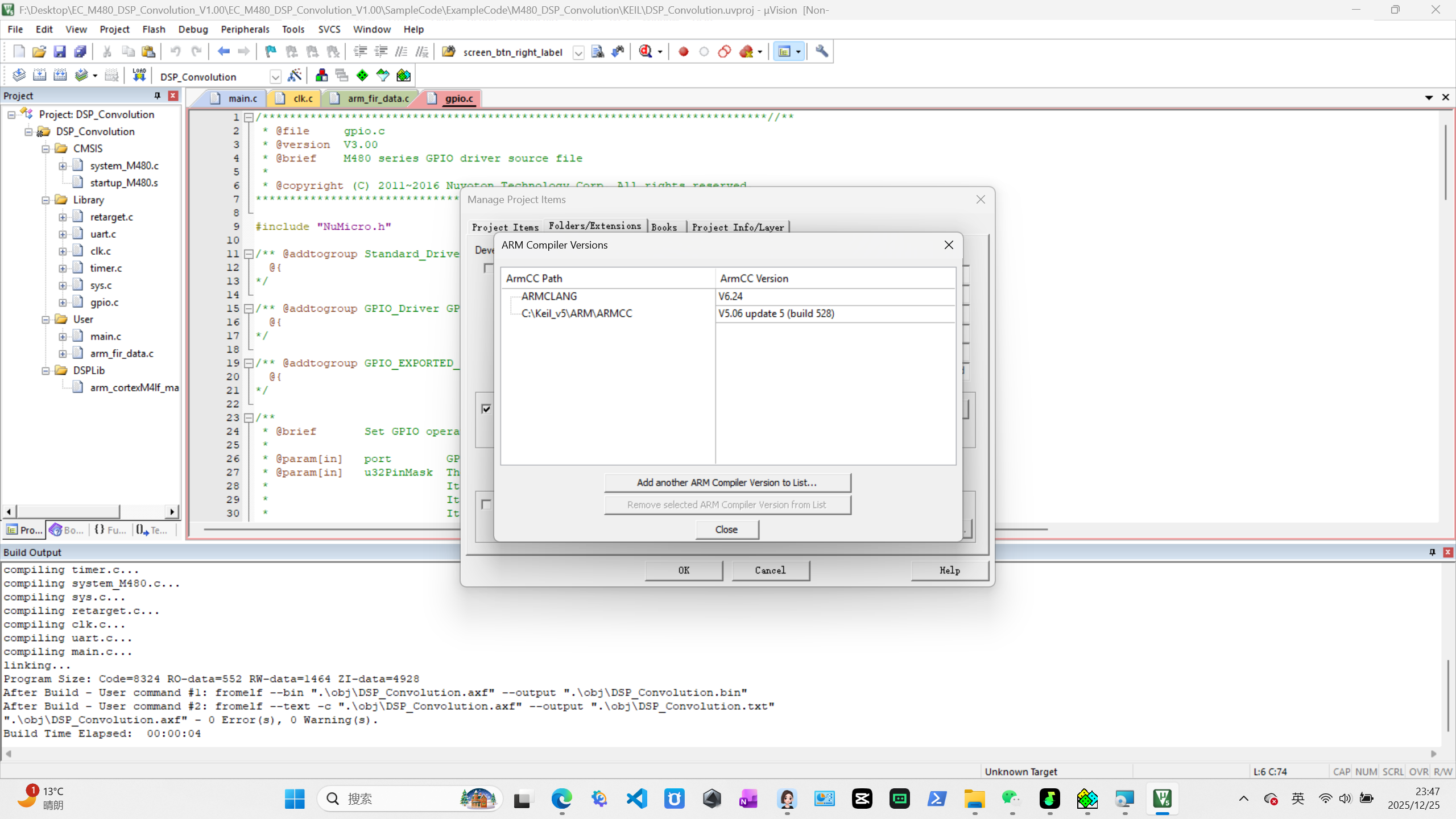 ARM Compiler区域,点击Add,选择你当前的ARMCC目录(即Keil_v5\ARM\ARMCC); - 确认后回到项目的
