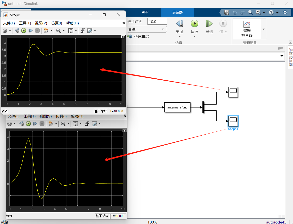 - 点击Simulink模型中的"运行"按钮(▶️),仿真时长默认10s;