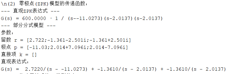- (2)将TF模型转换为零极点(ZPK)模型和部分分式模型,并写出表达式;