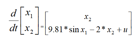 { x 1 ˙ = x 2 x 2 ˙ = 9.81 sin x 1 − 2 x 2 + u \begin{cases} \dot{x_1} = x_2 \\ \dot{x_2} = 9.81\sin x_1 - 2x_2 + u \end{cases} {x1˙=x2x2˙=9.81sinx1−2x2+u