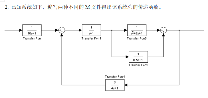 多模块串联/并联系统建模:已知多个传递函数模块,用两种不同M文件编写方法求系统总传递函数。