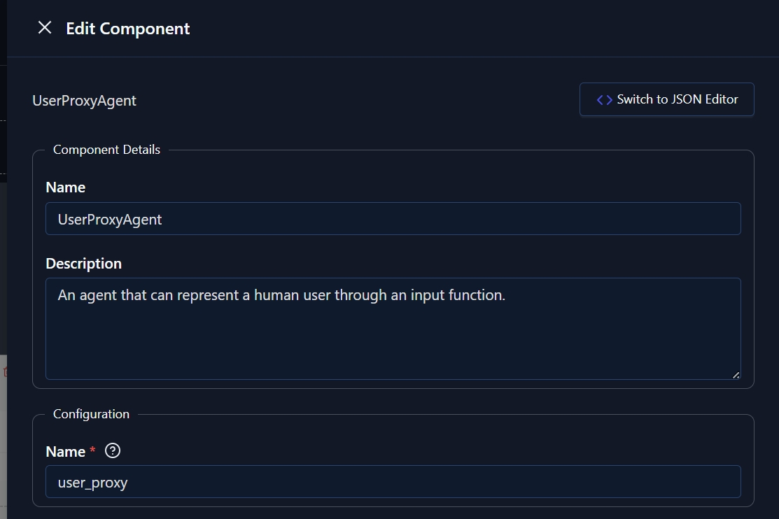 UserProxyAgent 是个特殊的 Agent,它不与 LLM 进行交互,它的职责是跟真实的人类进行交互。当某些情况需要人类介入的时候,会以一个输入的方式等待人类给出明确的信息。