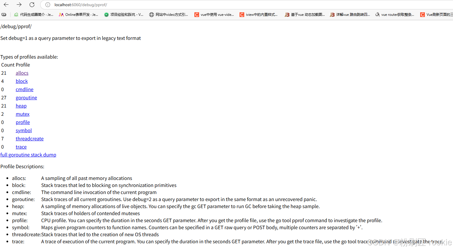 - net/http/pprof:采集服务型应用运行时数据进行分析