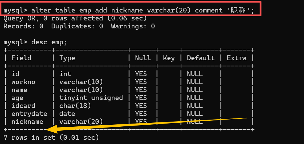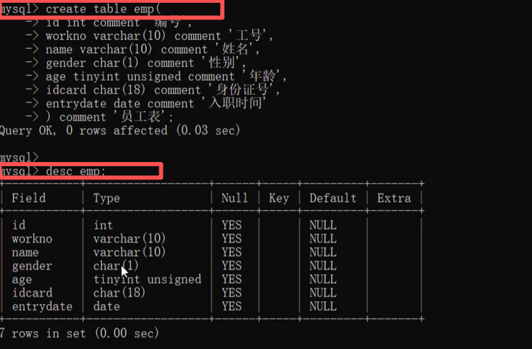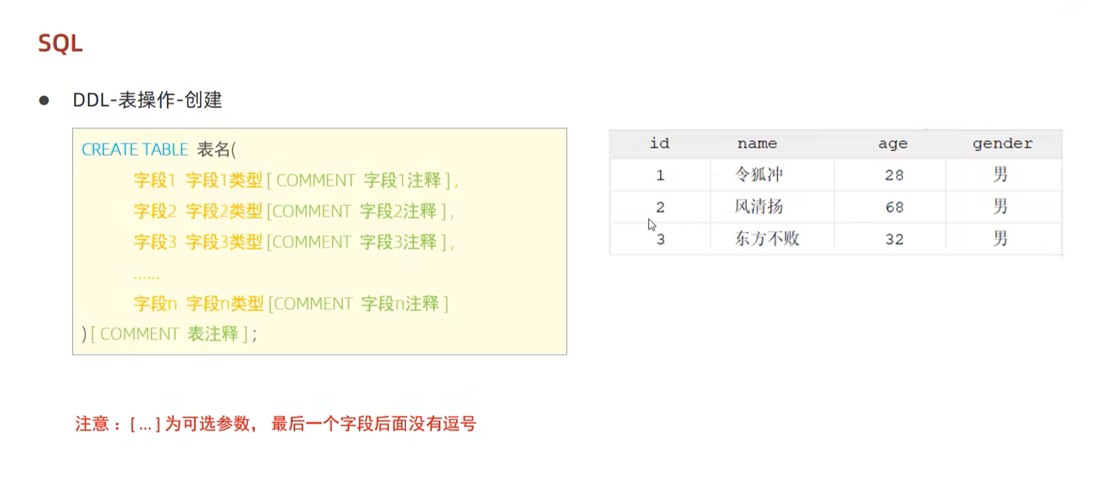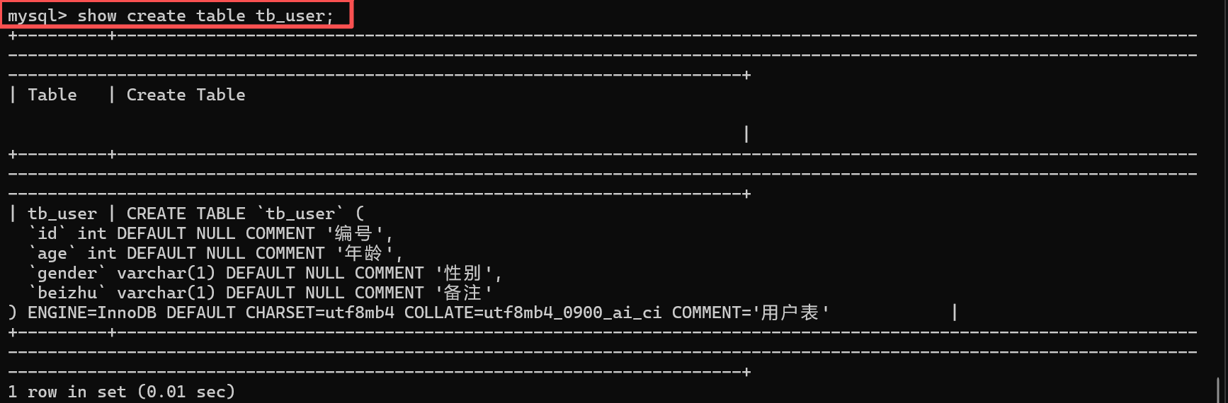 包括创建的指令、存储引擎信息、默认字符集、排序规则等