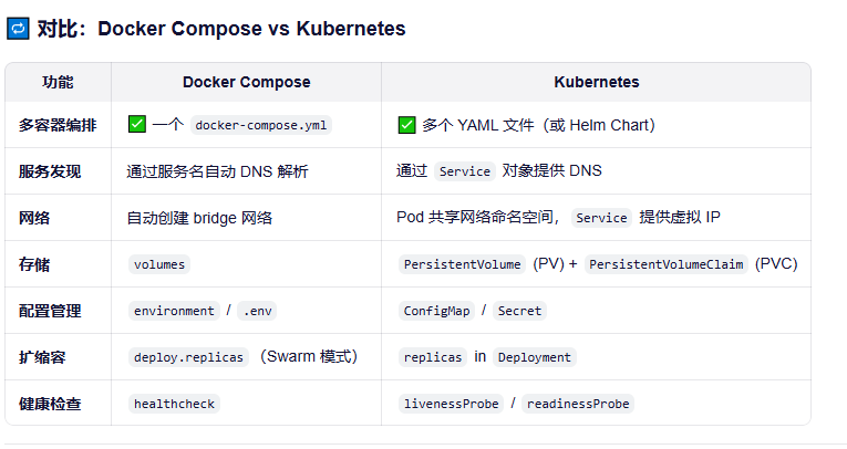 - Compose 痛点 :服务通过容器名通信,但容器 IP 可变,多实例时 DNS 不做 LB。