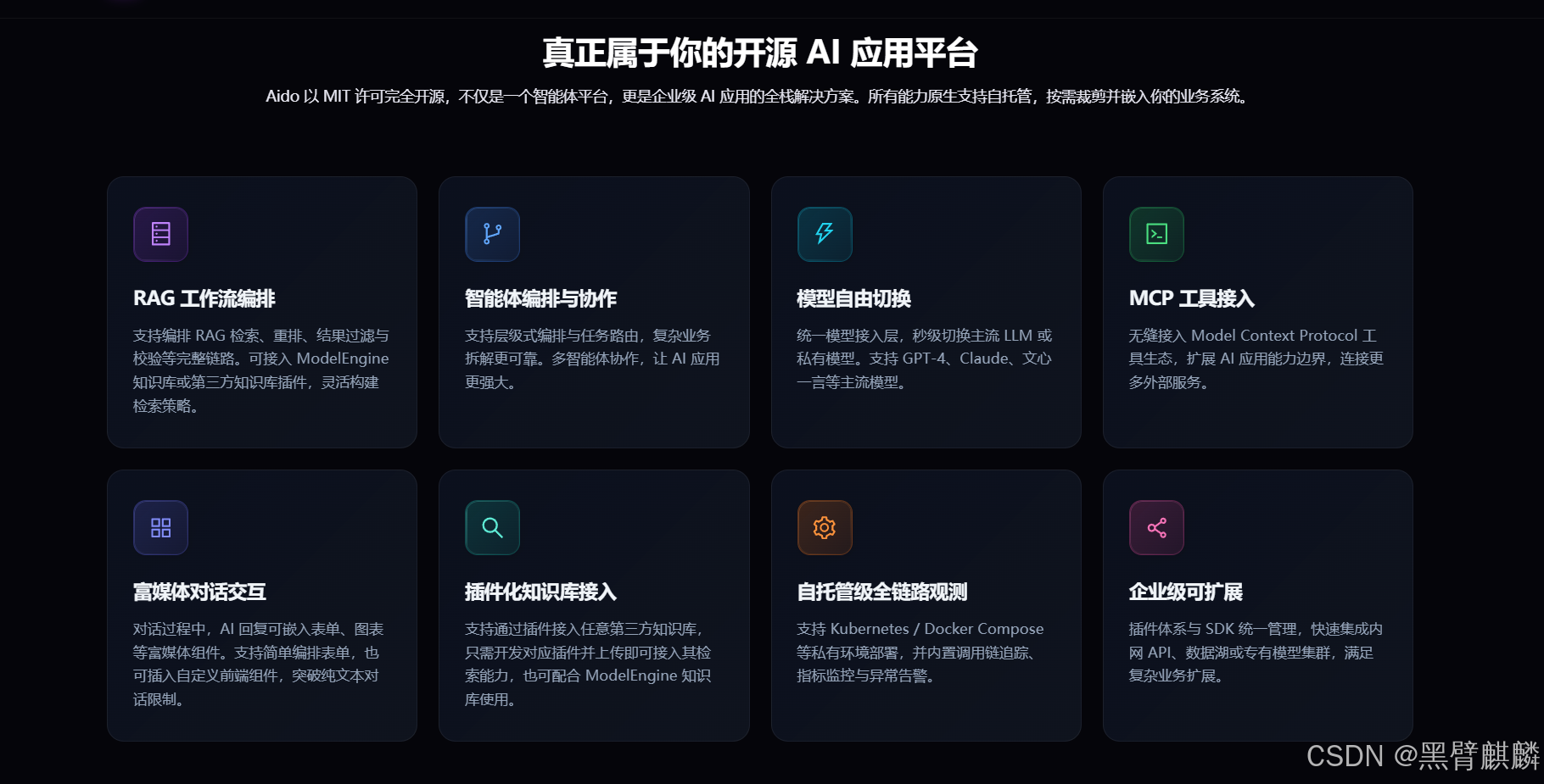 大家好!我是黑臂麒麟(起名原因:一个出生右臂自带纹身的高质量程序员😏),这边文章介绍华为ModelEngine快速搭建AI智能体,ModelEngine拉取源码即可本地运行,开箱支持 ETL + RAG、智能体编排、MCP工具接入、插件体系与企业级监控,帮助你在自有环境快速落地复杂 AI 应用。