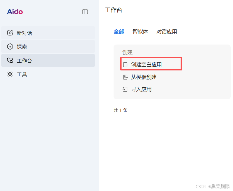 进入之后登陆,就可以看到自己的工作台,我们点击创建空白应用: