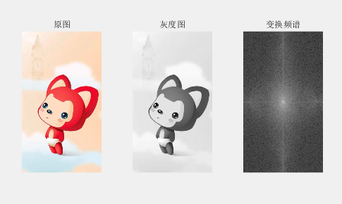 读取彩色图像→转换为灰度图→傅里叶变换→频谱中心化→可视化原图、灰度图及频谱图。