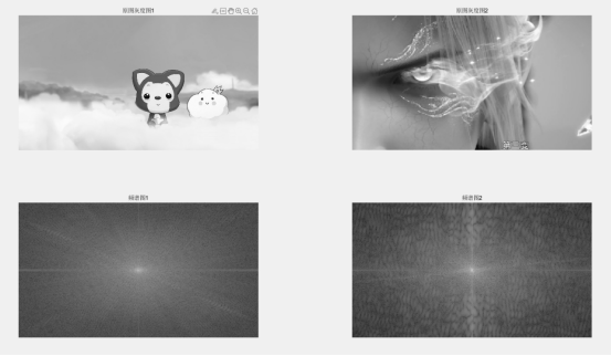 读取两张不同图像,转换为灰度图后分别进行傅里叶变换,对比频谱分布差异。