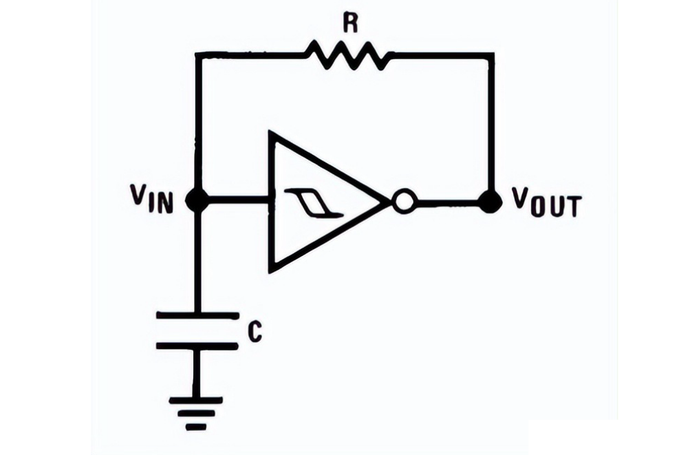 有两个阈值使施密特触发器能够像可预测的振荡器⼀样发挥 555定时器 的作⽤。下⾯为:简单的施密特触发器振荡器