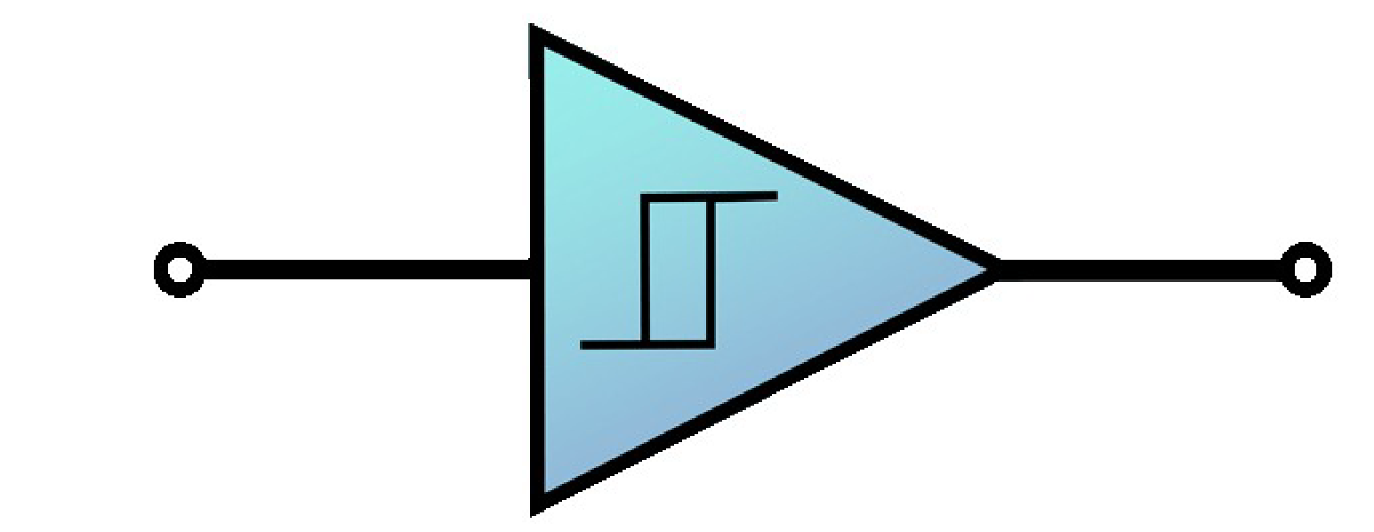 施密特触发器是⼀种逻辑输⼊,将提供滞后或两个阈值电平:⾼和低。这将使我们能够减少噪声信号产⽣的误差,从⽽产⽣⽅波。此外,