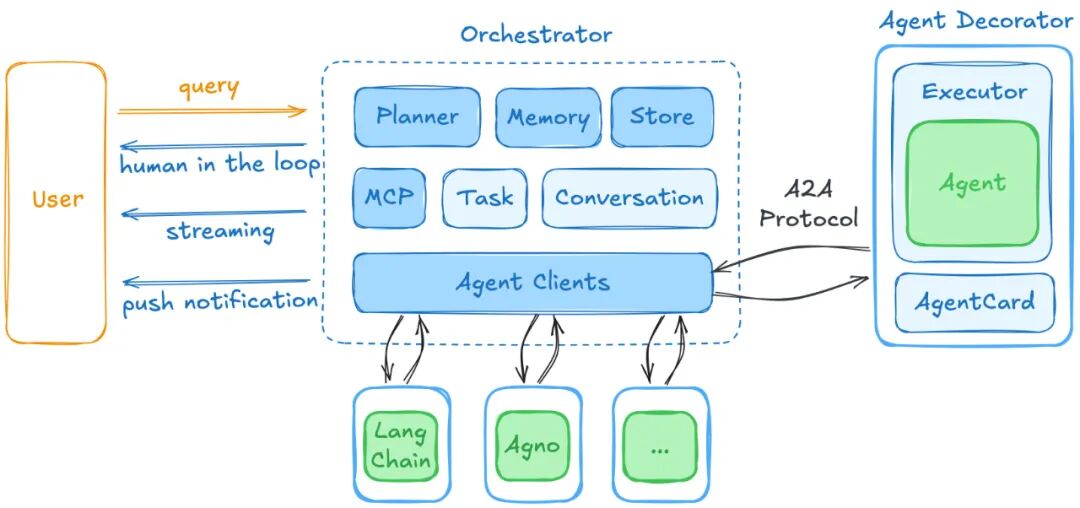 多智能体框架兼容:支持LangChain与Agno(A2A Protocol)框架