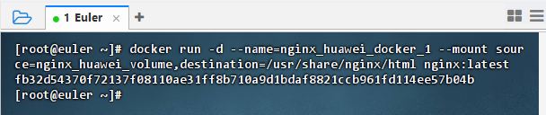 docker run -d --name=nginx_huawei_docker_1 --mount source=nginx_huawei_volume,destination=/usr/share/nginx/html nginx:latest