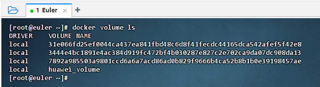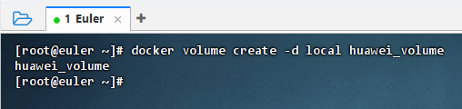 docker volume create -d local huawei_volume成功创建名为huawei_volume的本地数据卷,使用默认的local驱动。该卷可用于容器间持久化存储,确保数据在容器销毁后仍保留,验证了 Docker 数据卷的基本创建功能。