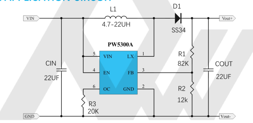 PW5300A的保护功能全面且可靠。它具备输入欠压锁定功能,可防止电池过放电;过温保护在芯片温度超过安全阈值时自动关断输出;
