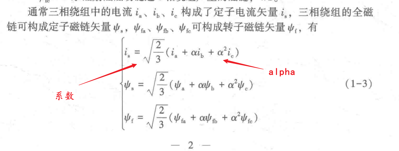 在看《永磁同步电机调速系统控制技术》这本书时, 遇到了 α\alphaα这个符号, 以及定子电流矢量前面的系数表示, 特此记录