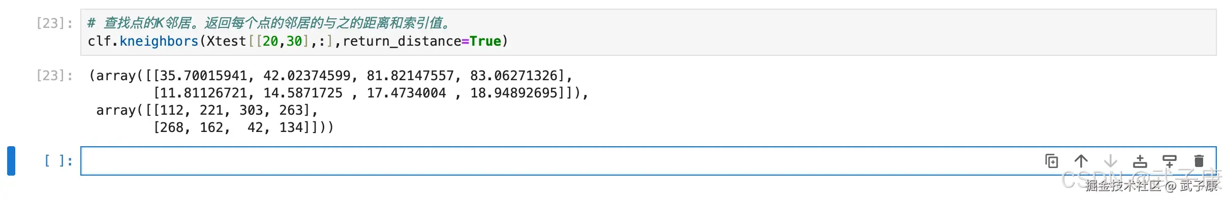 # 查找点的K邻居。返回每个点的邻居的与之的距离和索引值。
