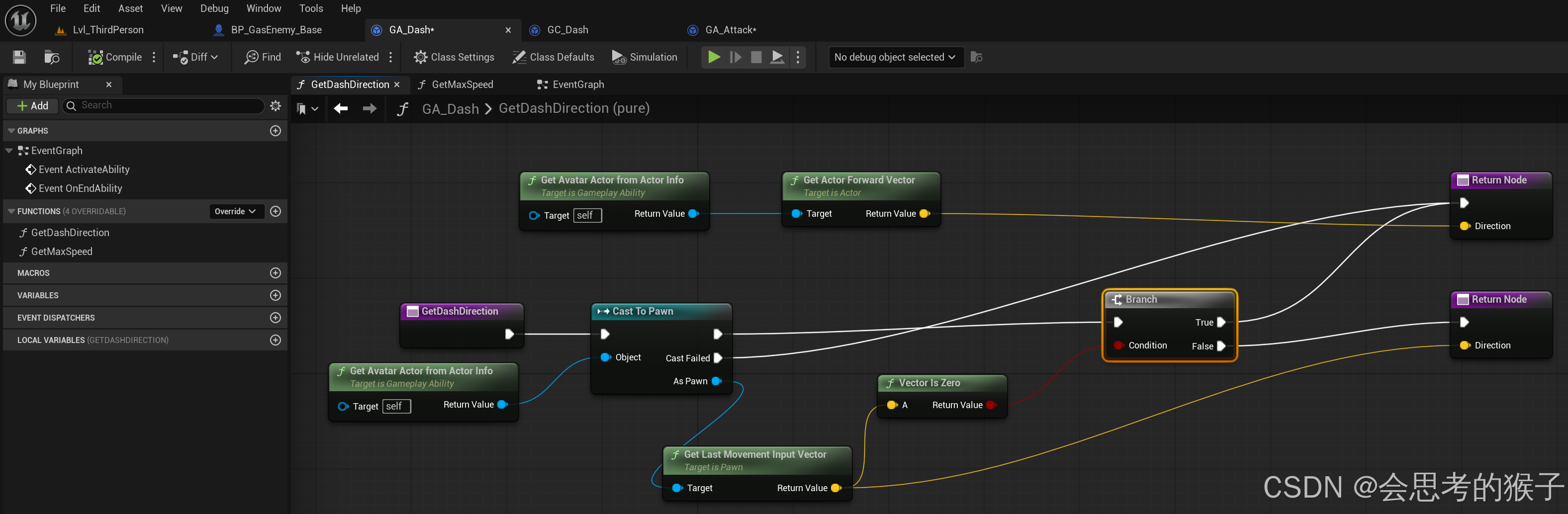 如果只是Get Actor Forwar Vector ,你朝前,你按W想像后冲刺这样是不行的,必须等人物朝后,再按冲刺技能才行