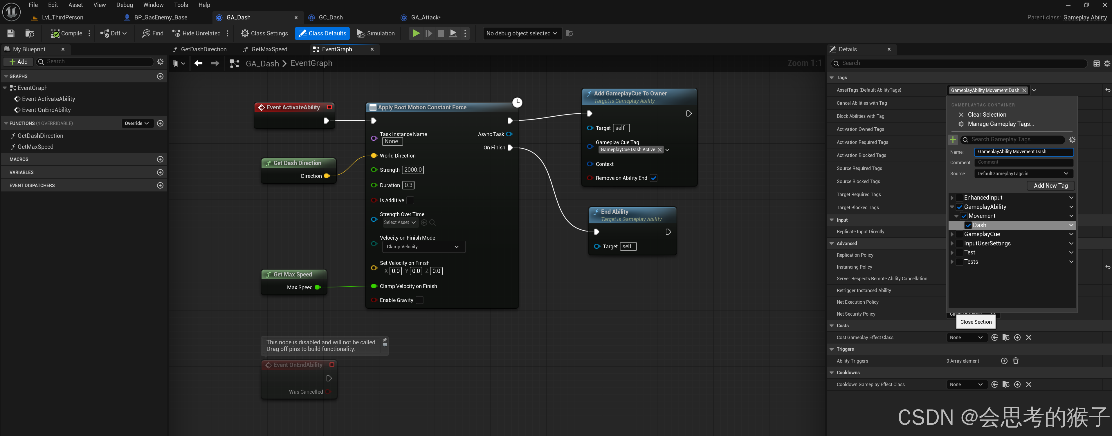 创建一个 GameplayAbility GA_Dash