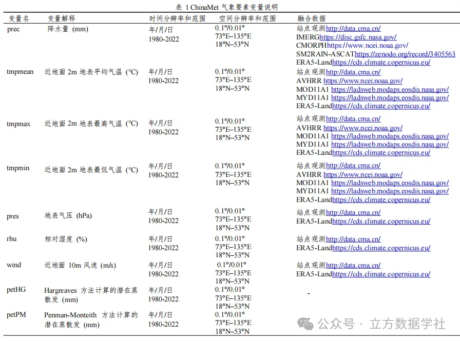 气象数据是我们在各项研究中都经常使用的数据,尤其是高精度的气象数据应用价值非常高。之前我们分享过nc格式的1980-2022年中国高分辨率逐日、逐月、逐年气象数据!该数据来源于研究者张凌, 胡英屹等发布在国家冰川冻土沙漠科学数据中心平台上的多源数据融合的中国高分辨多要素气象驱动产品(ChinaMet)!之前我们已经分享了基于该数据转换出的tif格式的0.01°分辨率逐日、逐月、逐年降水量栅格数据、平均气温栅格数据和最高气温栅格数据(可查看之前的文章获悉详情)!