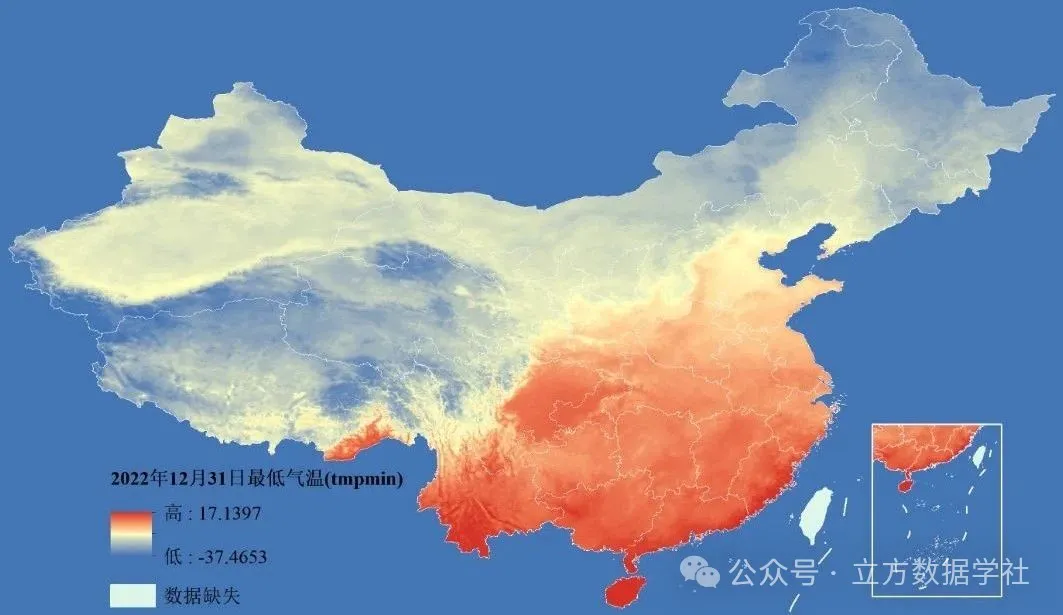 本次我们为大家带来的是1980-2024年的 我国0.01°分辨率的逐日、逐月和逐年的最低气温栅格数据! 为方便大家使用,我们将0.01°分辨率(约为1千米)的nc格式数据转化为栅格数据(.tif),数据层次提供逐日、逐月、逐年三个层级。数据年份持续更新,目前已更新至2024年。另外需要说明的是, 由于 逐日数据量太大,逐日最低气温栅格只提供2020-2024年这5年的数据,逐月和逐年的栅格数据提供1980-2024年共45年的数据。 数据单位为摄氏度(℃)。另外需要说明的是,该数据集缺少我国台湾地区的数据。