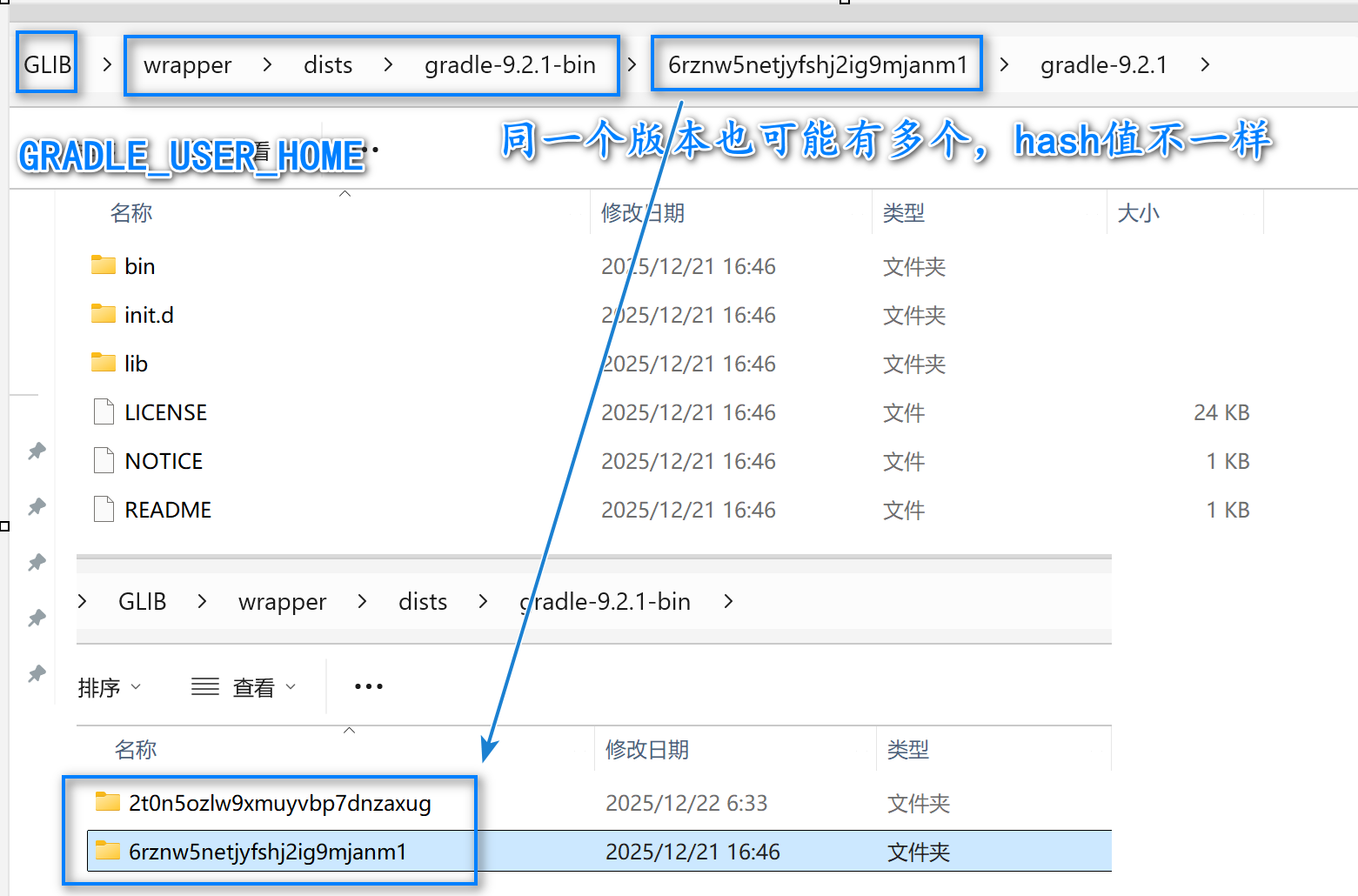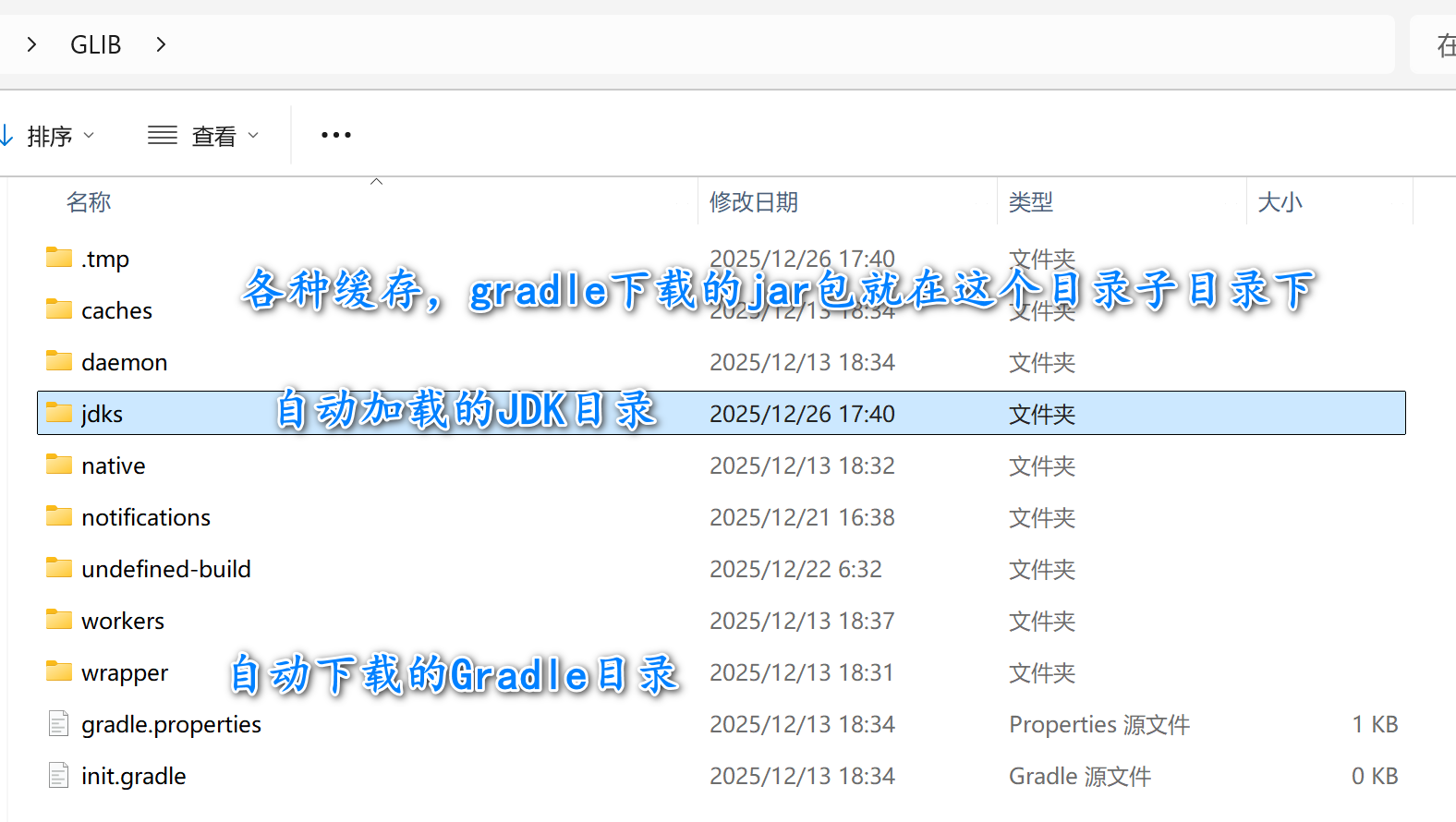 - jdks:存储 Gradle 通过工具链(Toolchain) 自动下载的JDK