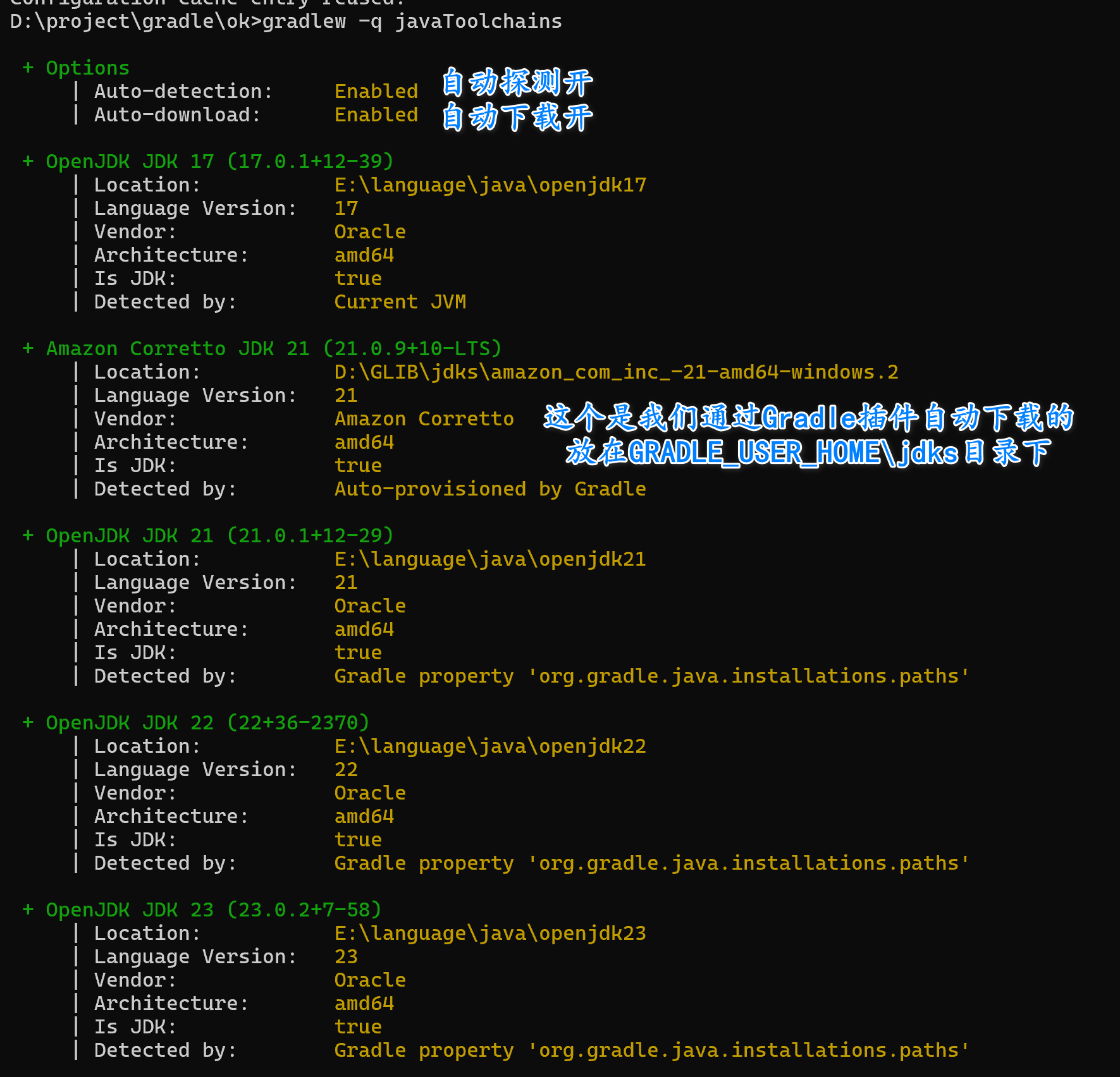 gradle -Dorg.gradle.java.installations.paths=D:/Env/JDK/openjdk17 -Pgradle.user.home=F:/custom/home