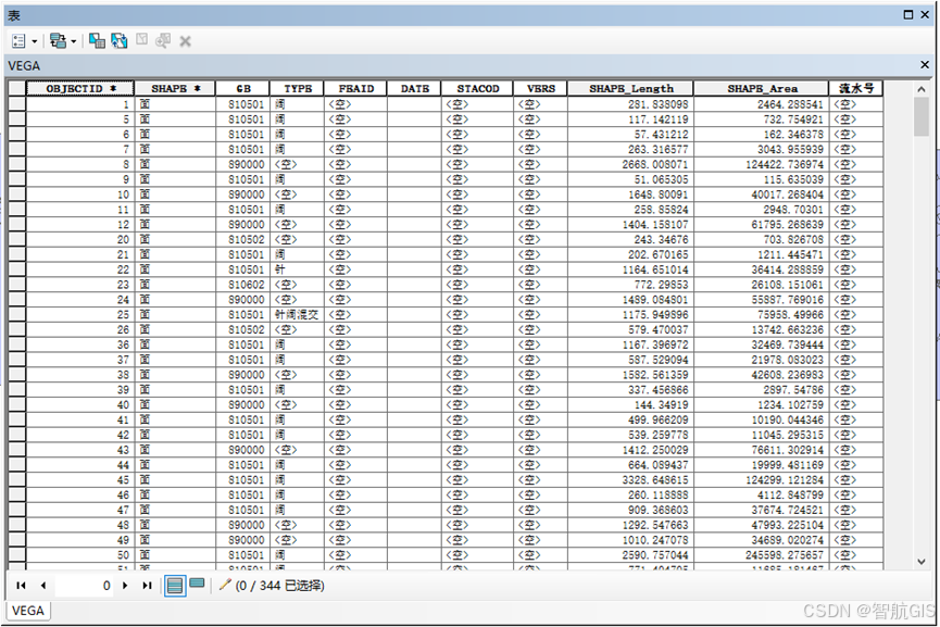 在实际生产中可能会对要素进行合并或者分割,导致FID或OBJECTID字段编码是不连续的,如下图: