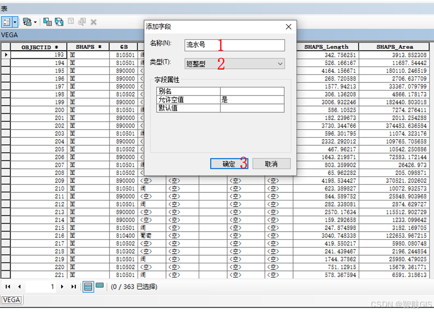 1.shp数据FID字段是从0开始排序的,所以想要获得流水号可在字段计算器中输入:!FID! + 1。