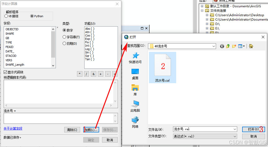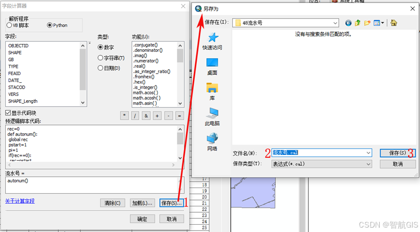 点击字段计算器中保存,在弹出另存为对话框中,选择合适位置,文件名:流水号.cal