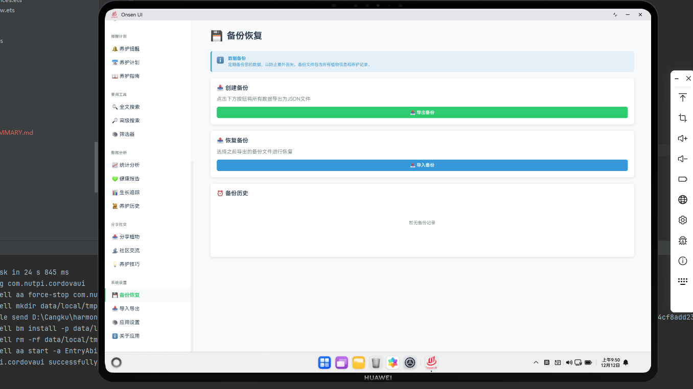 数据备份系统为用户提供了数据安全保护。在Cordova框架与OpenHarmony系统的结合下,我们需要实现一个完整的备份恢复系统,包括本地备份、云备份和恢复功能。