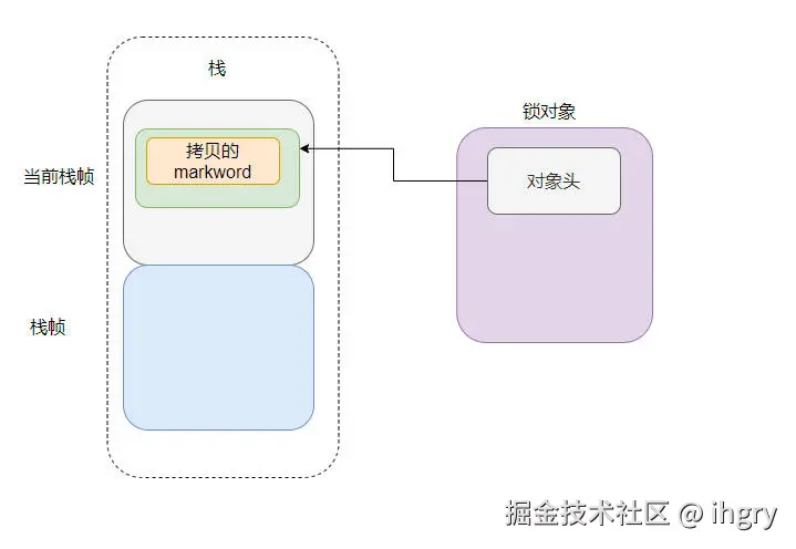 轻量级锁,JVM会在当前线程中创建一个栈帧,通过CAS操作将这个栈帧的地址写入对象头中,如果成功表示该线程获取到了锁,如果失败则表示其他线程已经持有该锁,此时会升级为重量级锁 - 当锁竞争激烈时,JVM会升级为重量级锁,