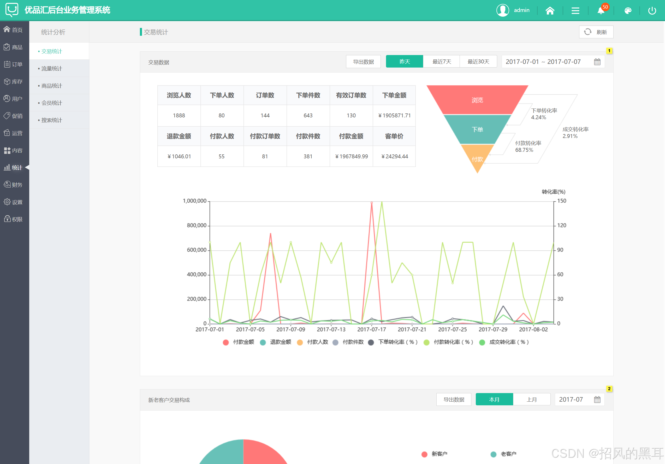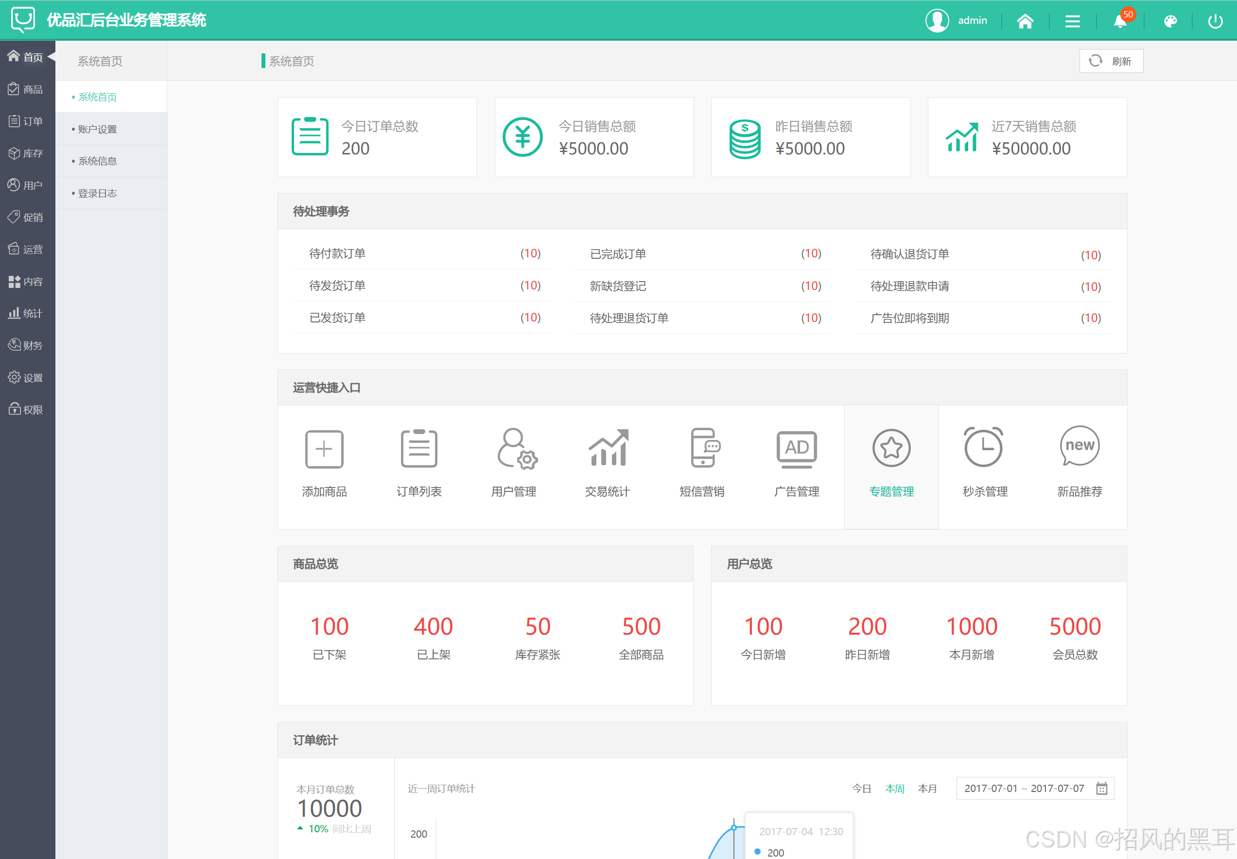 内容管理与统计管理:内容发布与审核、SEO优化、数据分析与可视化报表等功能,帮助商城优化内容策略,精准把握市场动态。