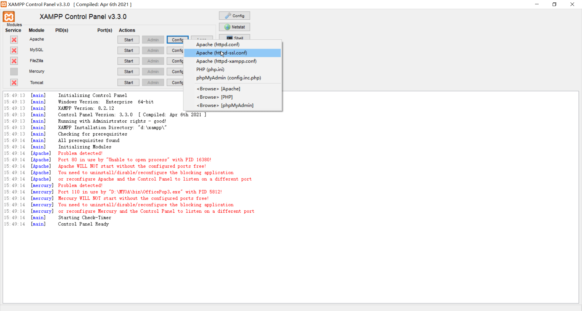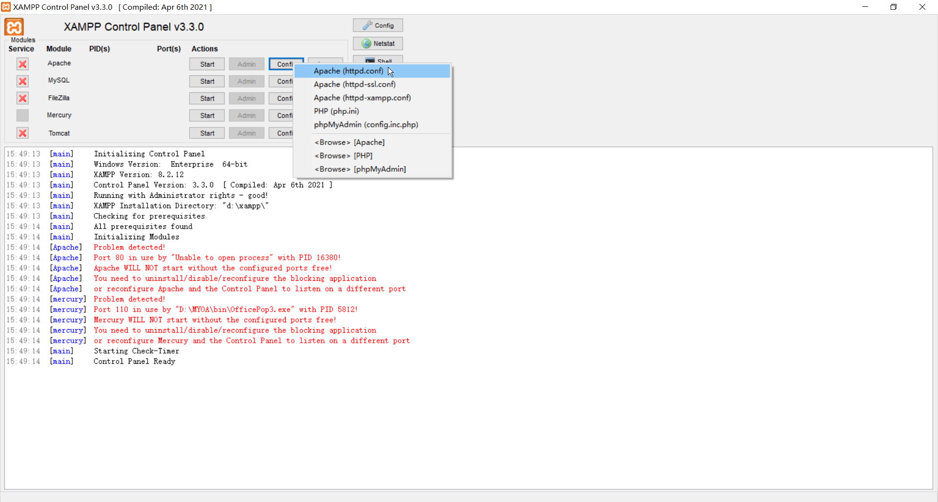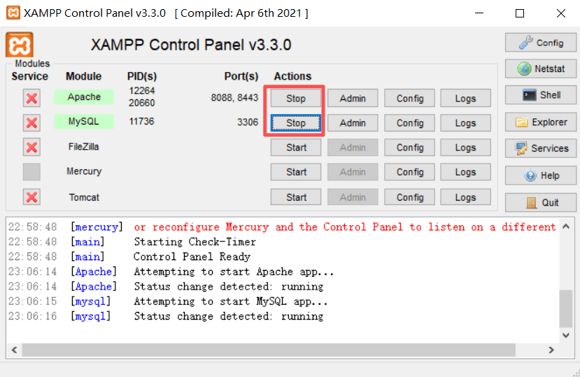 f) 启动 Apache 和 Mysql。