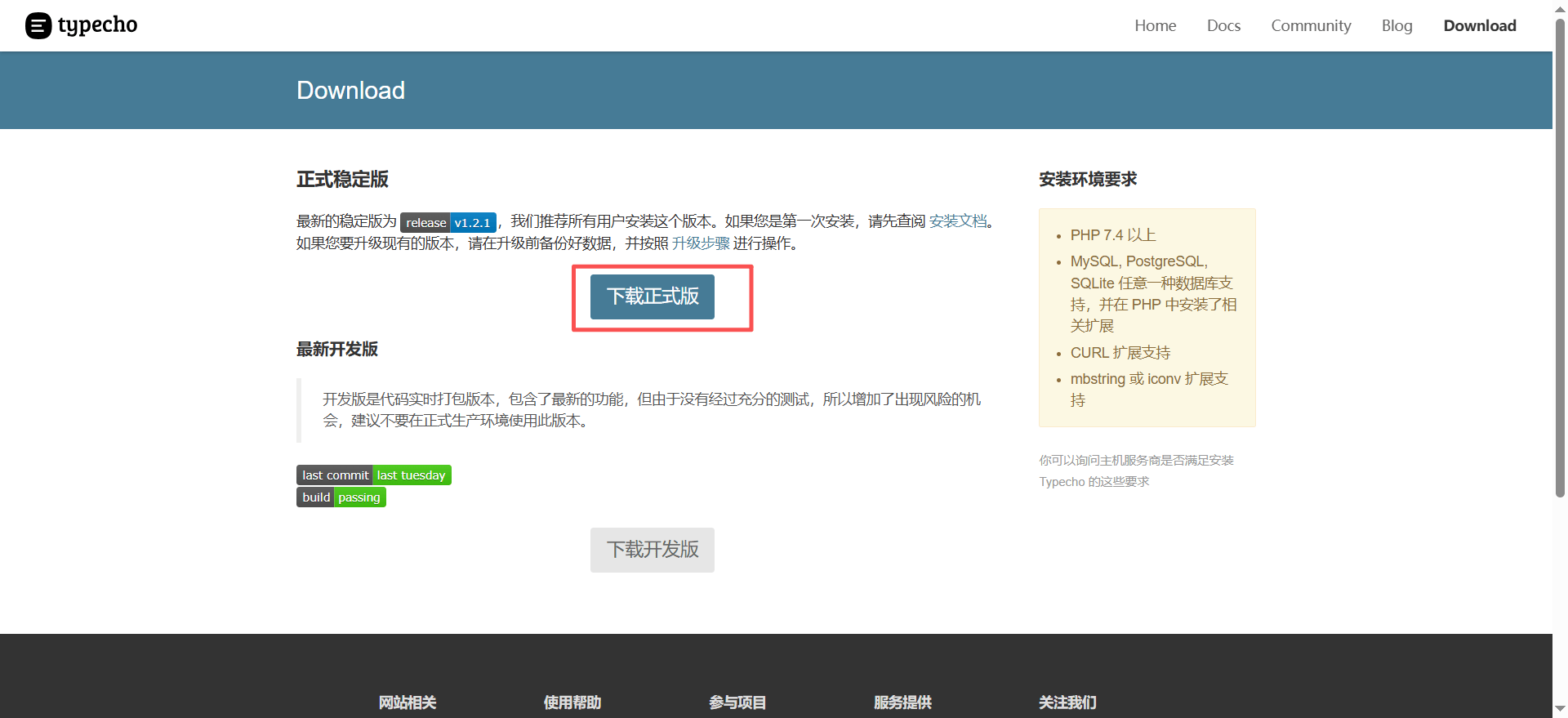2、下载 Typecho 最新版