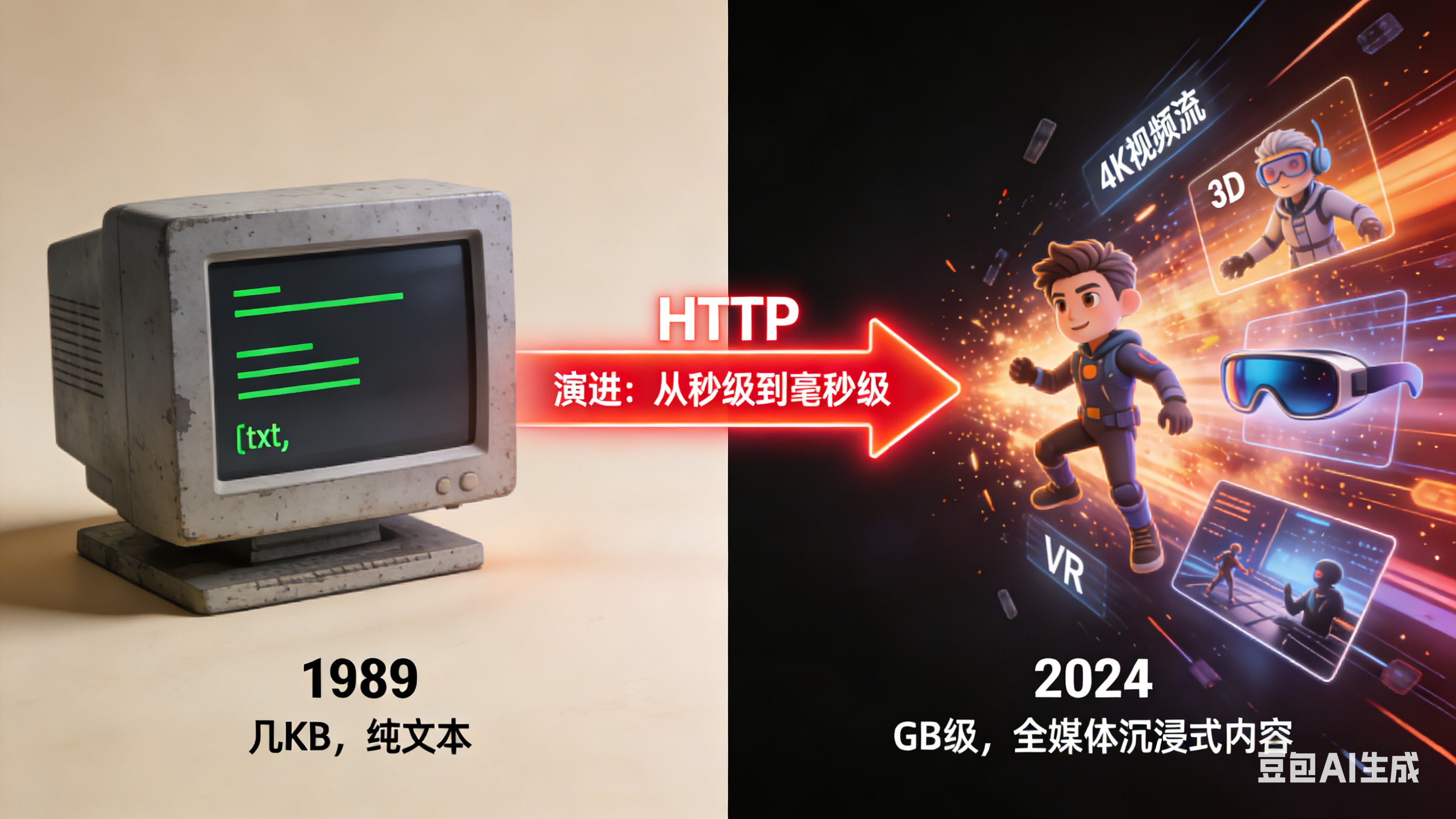 - 2024年(现在):需要实时传输4K视频、大型游戏、AR/VR内容,用户期望毫秒级响应