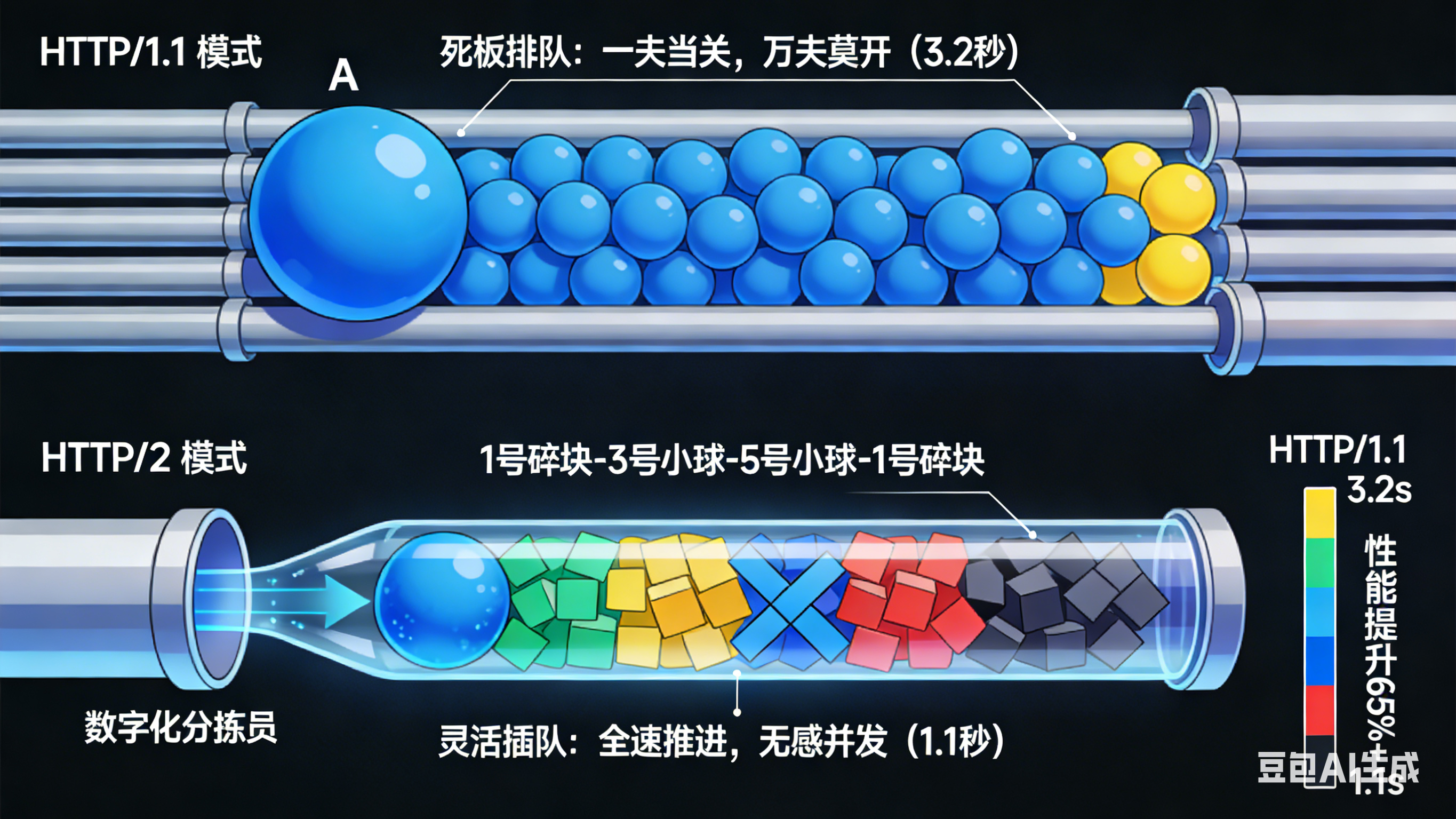 HTTP/2通过多路复用,从根本上减少了请求排队和Stalled时间。 因为它移除了HTTP/1.1时代因连接数限制和串行处理导致的排队问题。
