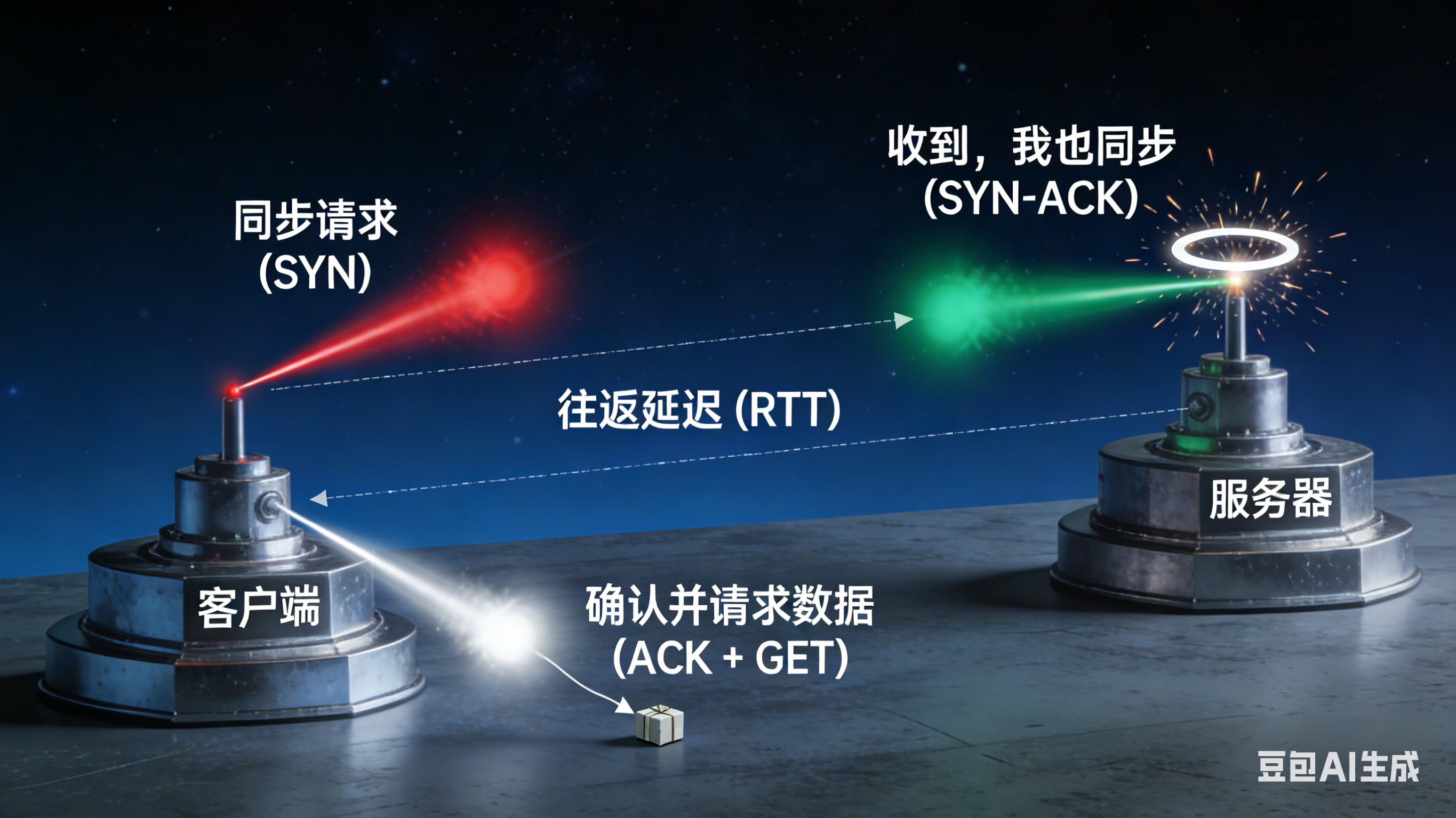 - 每个连接:1-3个RTT(往返时间)的握手开销