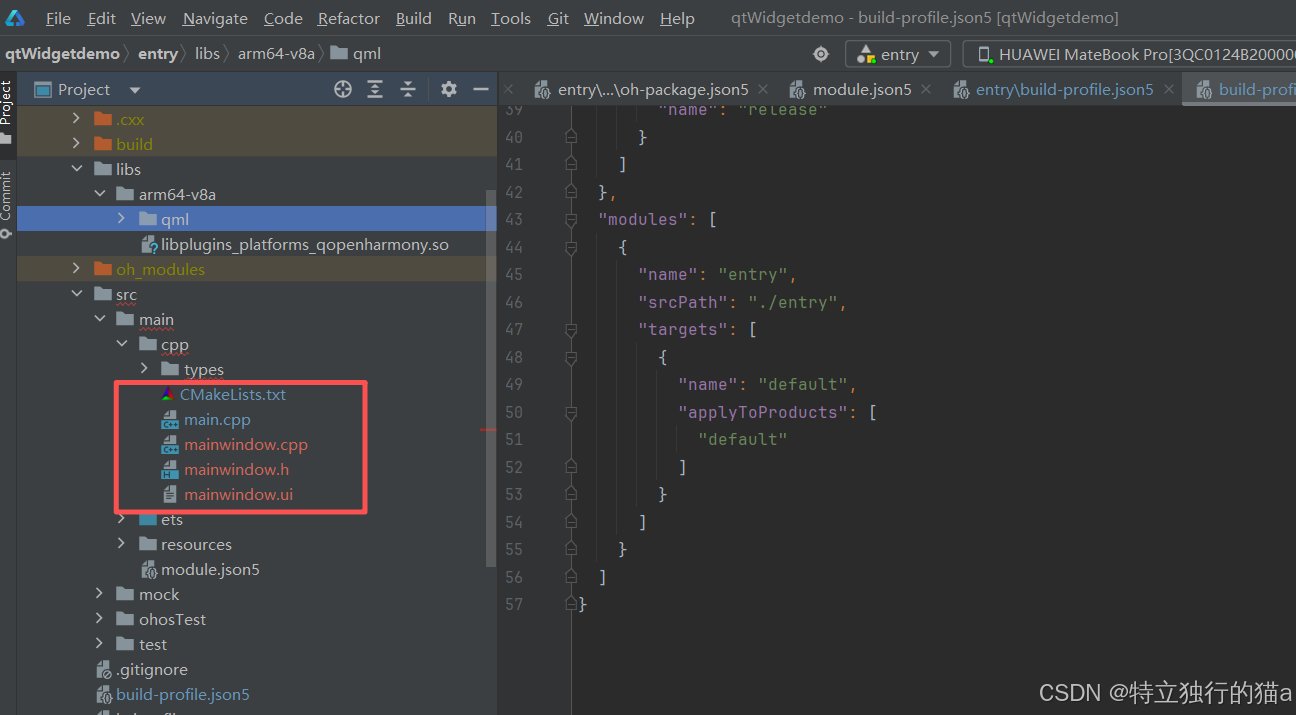 在模块级build-profile.json5中配置Qt SDK路径和架构: