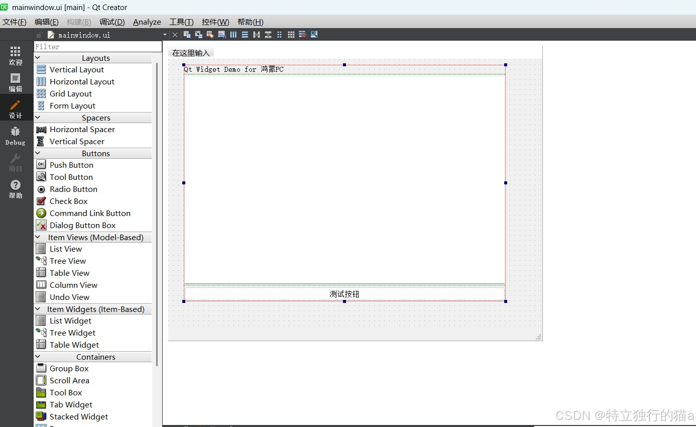 Widget界面,可以通过电脑桌面Qt环境自带的QtCreator这个工具来编辑。