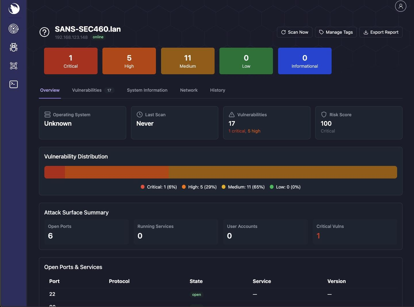 Sirius 是一款开源的综合漏洞扫描器,利用社区驱动的安全智能和自动渗透测试能力。引入了全面的系统监控和可观测性功能。几分钟内开始使用我们基于Docker的设置。