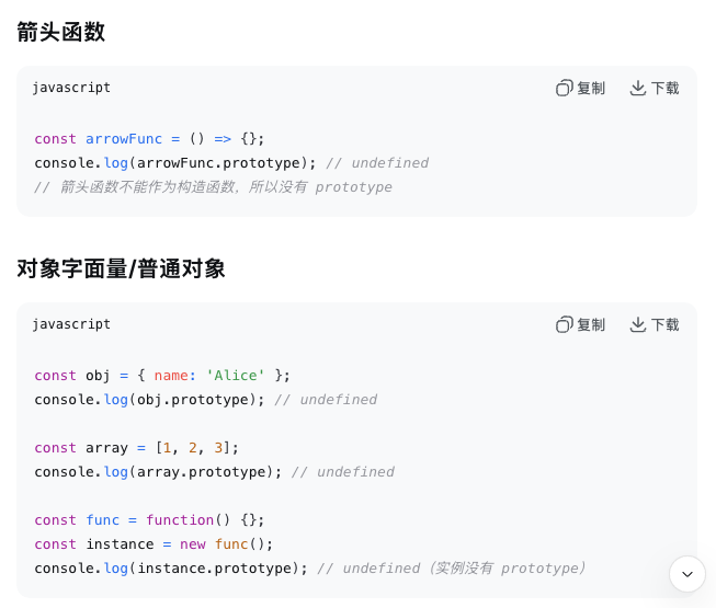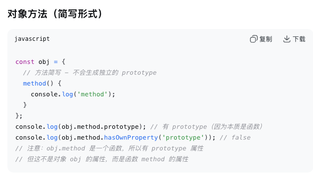 如何判断关键点是: prototype 属性只存在于可能作为构造函数的函数上。如果函数不能/不应该使用 new 调用(如箭头函数),就没有 prototype 属性