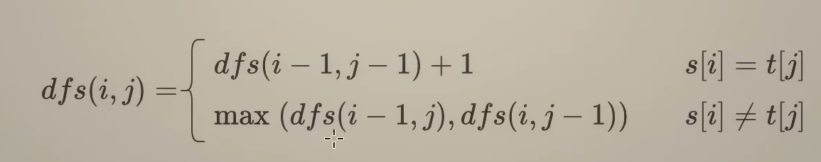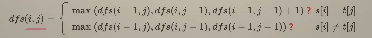 dfs(i,j) = max(dfs(i-1,j),dfs(i,j-1)) s[i]≠t[j]