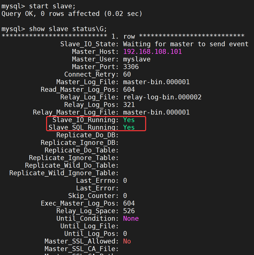 mysql> GRANT REPLICATION SLAVE ON *.* TO 'myslave'@'192.168.108.%' IDENTIFIED BY '123456';
