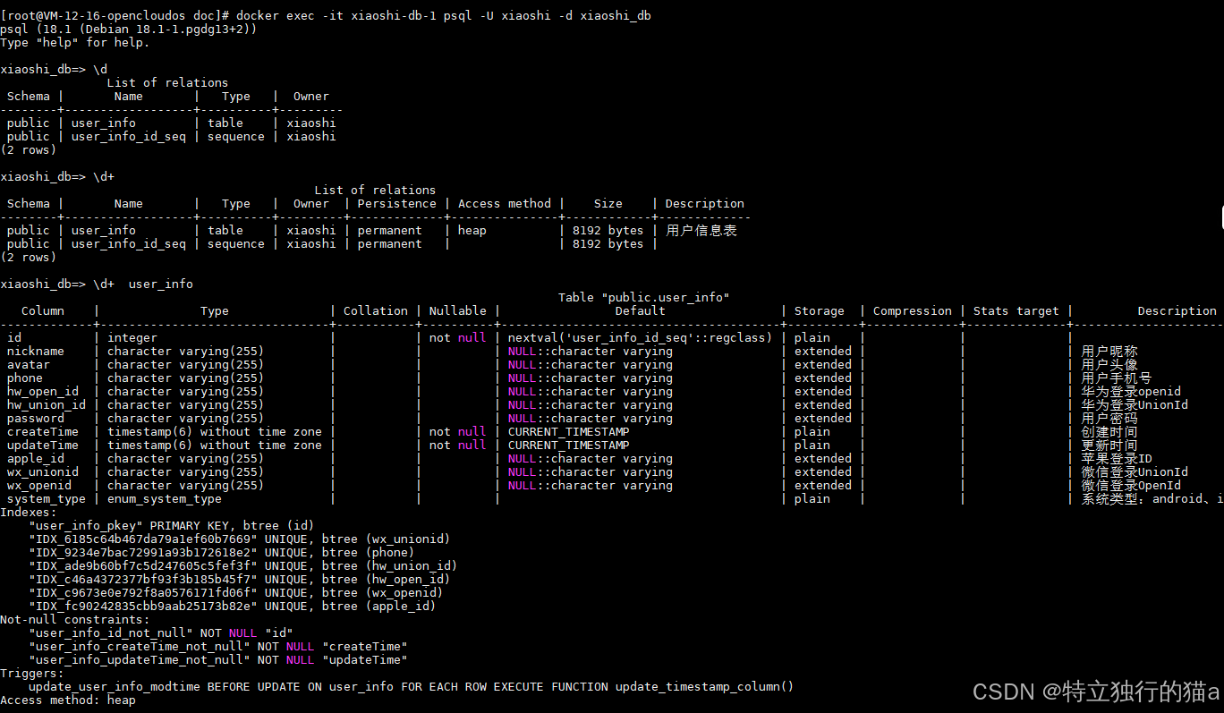 docker exec -it xiaoshi-db-1 psql -U xiaoshi -d xiaoshi_db -c "\d user_info"