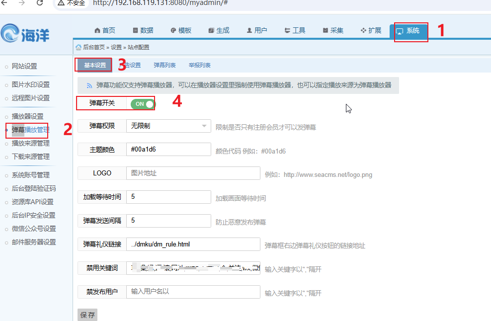 2、后台登录后,开启弹幕功能