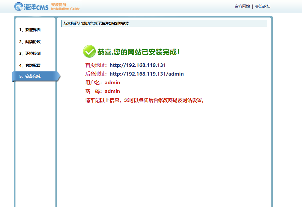 db,海洋CMS特性就是强制后台必须修改(这个dedecms可以学习),脚本实现了,下面这一步告知你新地址