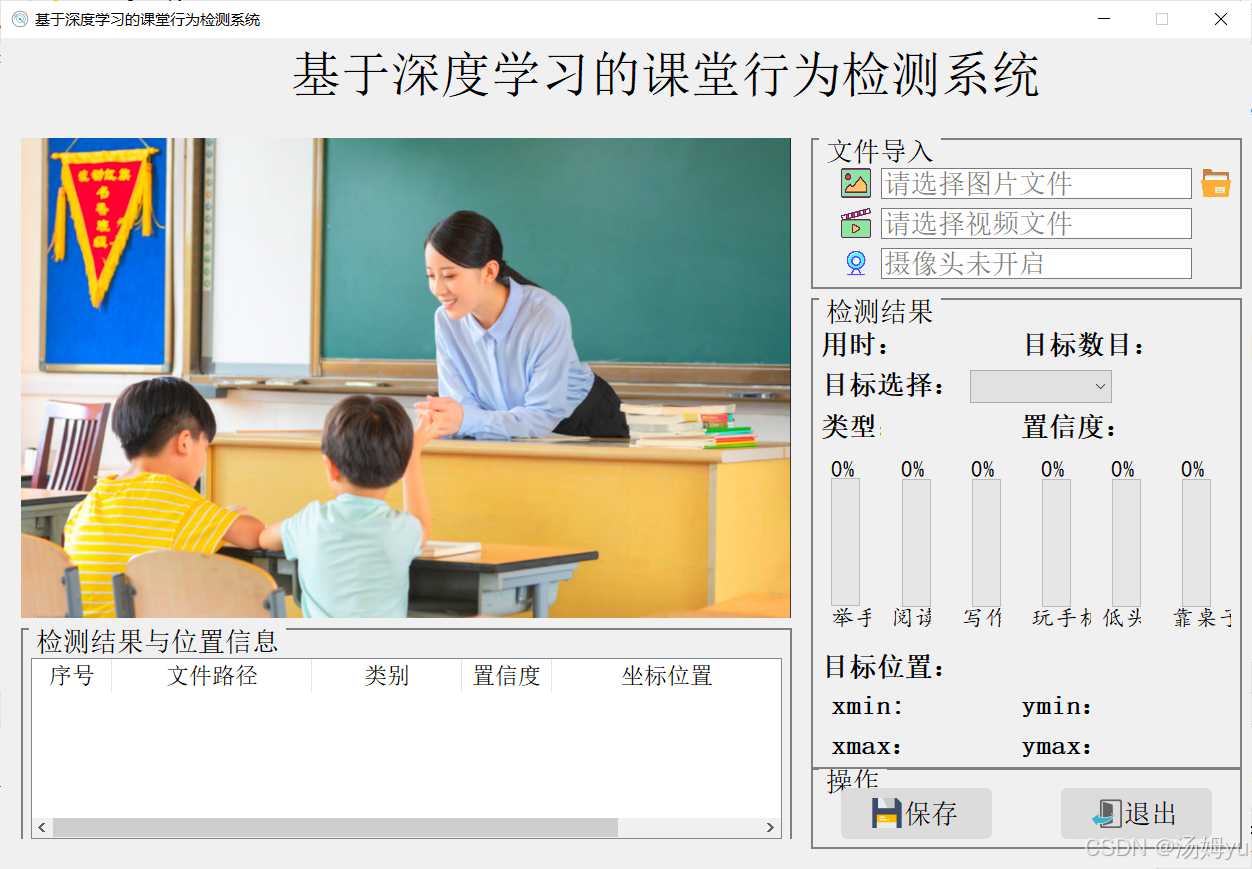 灵活的输入选择:可以根据实际需求选择图片、视频或摄像头作为行为检测的输入源,方便在不同教学场景下使用。
